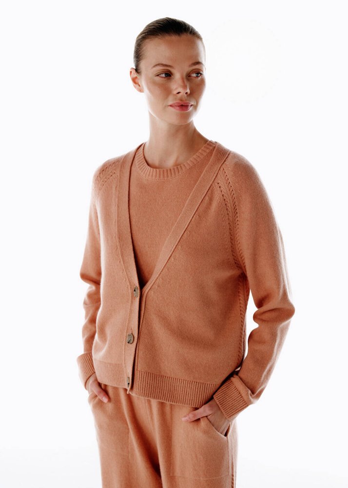 Sabah kahvesinden akşam buluşmalarına kadar, her anınızda kendinizi özel hissettiren bir parça. Pembe tonlarıyla enerjik ve neşeli bir duruş sergileyen kaşmir triko hırka, tasarımıyla şık bir siluet oluşturuyor. Düğme kapamalı yapısı, hem pratik hem de stil sahibi bir görünüm sunarken %95 kaşmir dokusu her hareketinizde hafiflik ve rahatlık hissi sağlıyor. Klasik hırkaların ötesinde bir zarafet arayan kadınların seçimi olmaya aday.