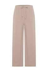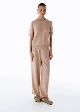Kaşmir triko pantolon, pudranın yumuşak tonuyla gardıroplara romantik bir dokunuş kazandırıyor. İtalyan iplikten üretilen kaşmir ve yün karışımı, ipeksi bir his ve doğal bir ısı dengesi sağlar. Bağcıklı beli, ayarlanabilir paçası ve ajur örgü detaylarıyla işlevsel olduğu kadar estetik bir görünüme sahiptir. Cepli tasarımı günlük rahatlığı tamamlar. Pudra triko üstlerle ton sür ton bir uyum yakalayabilir veya kontrast renkte bir kazakla modern bir geçiş yaratabilirsiniz.