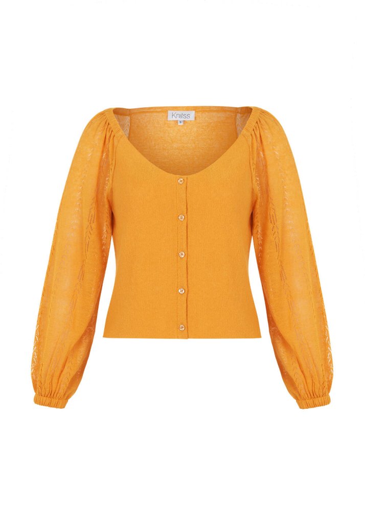 Keten Karışımlı Düğmeli Turuncu Triko Üst
