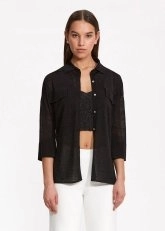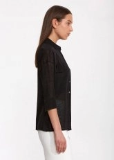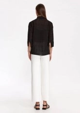 Siyah triko gömlek, içerdiği keten karışımı sayesinde kendisi için en iyisini arayan Knitss kadınlarına serin bir yaz deneyimi sunar. Cepli kadın triko gömlek modeli, 3/4 kol ve yırtmaç detaylarına sahiptir. Business ve hafta sonu kombinlerinize uygun triko gömlek modelini, koleksiyonda yer alan diğer parçalarla kombinleyebilirsiniz.