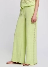 Keten Karışımlı Ajur Detaylı Rahat Kesim Yeşil Triko Pantolon