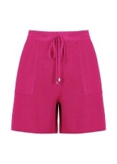 Keten Karışımlı Cepli Beli Bağcıklı Fuşya Triko Şort