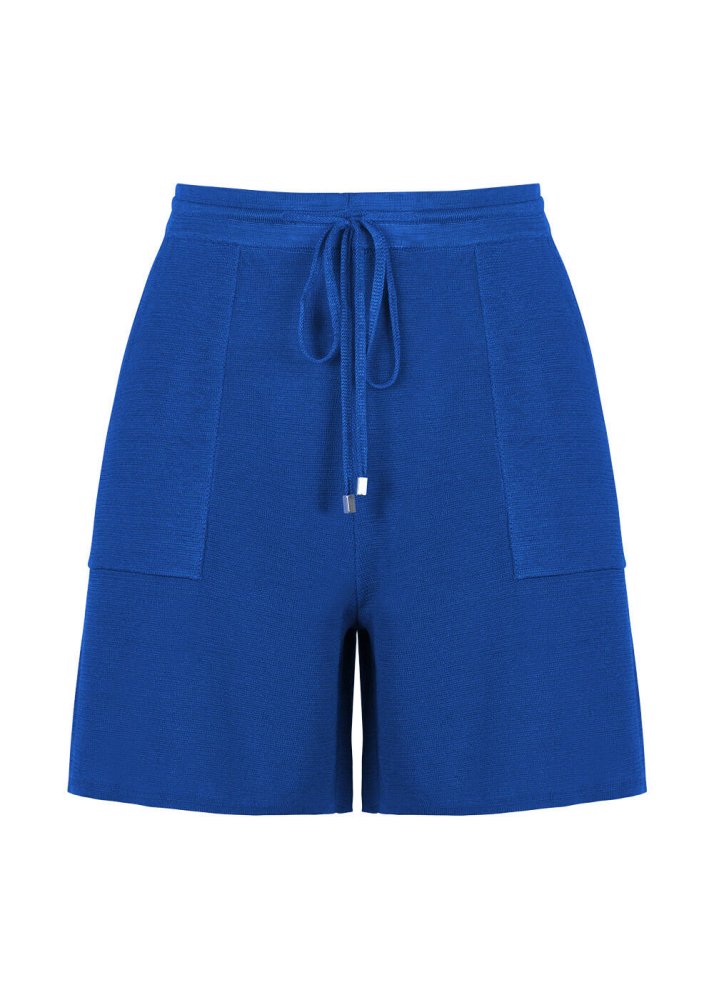Keten Karışımlı Cepli Beli Bağcıklı Mavi Triko Şort