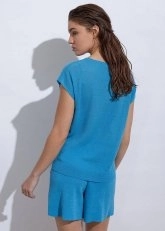 Keten Kolsuz Mavi Triko Üst