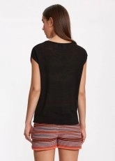İncecik kumaşı ile yaz sıcaklarında maksimum konfor sunan keten siyah kolsuz triko üstü keşfedin. Çağdaş kol kesimi ile minimal fakat çarpıcı bir stil sunan siyah triko üst, ketenin serinlik hissi veren doğal yapısı ile konforuna düşkün Knitss kadınlarının vazgeçilmezi olmaya adaydır. Gündüzden gece kullanıma uygun siyah kolsuz triko üstle zamansız şıklığın tadını çıkarın.