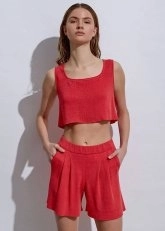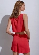 Sıcak yaz günlerinde serin tuşesi ile sportif kombinleriniz için ideal olan triko üst, yenilikçi ve özgür ruhlu Knitss kadınlarına özel üretilmiştir. Konforlu ve şık spor giyim giyimin başrol oyuncularından olmaya aday olan triko üst modeli, stil sahibi bir yazlık kombin tamamlayıcısıdır.