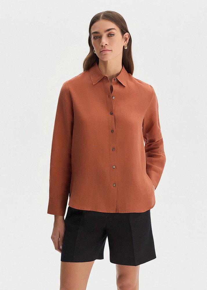 Kiremit Rengi Regular Fıt Keten Gömlek