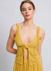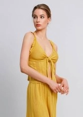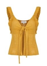 Knot Detailed Yellow Pointelle Knit Top