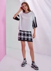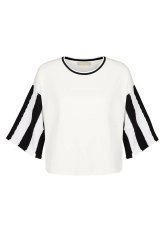 Kolları Triko Detaylı Beyaz T-Shirt