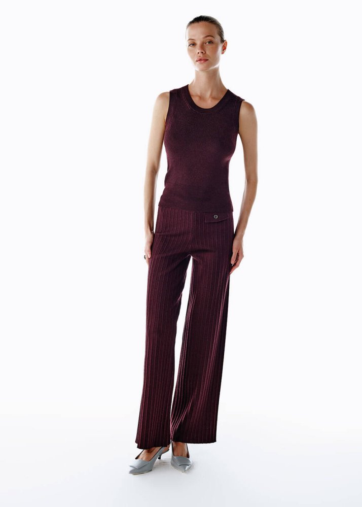 Extrafıne Merino Yün Karışımlı Triko Pantolon Mürdüm