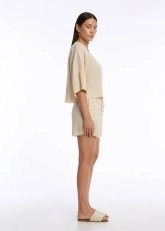 Beldeki ayarlanabilir bağcık detayıyla kişiye özel bir uyum sunan kontrast detaylı bej keten şort, zarif ve sade tasarımıyla her türlü kombininize eşlik etmeye hazır. Hafif ve dökümlü yapısı sayesinde hareket özgürlüğünüzü kısıtlamazken, doğal keten dokusunun sağladığı sofistike hava ve kontrast detaylar, zamansız şıklık katıyor. İster plajda, ister şehirde, konfor ve stil arayanlar için ideal bir seçim.