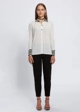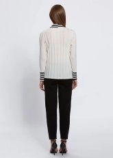 Kontrast çizgili yaka ve manşet detayı ile özgün kombinler yaratacağınız triko gömlek ile tanışın. Ekru triko gömlek modeli, birinci sınıf İtalyan ipliklerinden üretilmiş olup soğuk günlerde terletmeden ısıtır. Slim fit kalıbı ile vücudunuzu sararak gün boyu konforlu bir giyim deneyimi sunan kadın triko gömlek, kol ve bel kısımlarında yırtmaç detayına sahiptir.