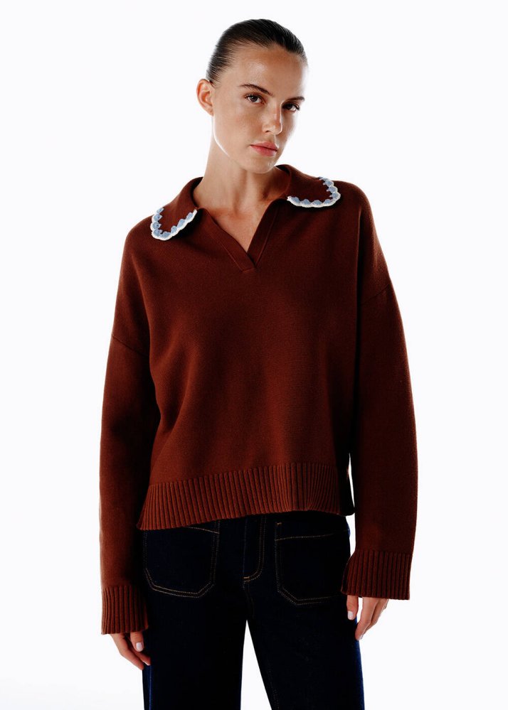 Kontrast renkli v yaka kahverengi triko, Knitss’in konfor ve zarafeti birleştiren tasarımlarından biri. Kahverenginin doğal sıcaklığına yaka detayında kontrast renk geçişleri eşlik ederken, trikonun yumuşak dokusu cilde zarif bir temas sunar. İtalyan iplik kalitesiyle üretilen bu model, sade ama dikkat çekici bir görünüm vadeder. İster triko pantolonlarla ister denimlerle zahmetsiz bir şekilde kombinleyin. Her koşulda modern, konforlu ve kusursuz bir duruş sizinle.