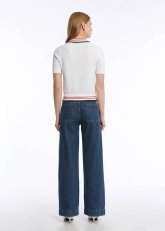 Sertifikalı organik pamuk ipliğinden üretilen polo yaka yarım kollu beyaz triko üst, stil sahibi yazlık kadın kombinleri için harika bir parçadır. Nefes alan doğal yapısı, özgün triko örgüsü, çizgi desenli polo yaka tasarımı ile Knitss’in çağdaş stilini her detayda yansıtan üst, yazın hafifliğini yazlık giyim dolabınıza taşır.