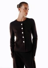 Klasik çizgilerin modern bir yorumunu sunan koyu kahverengi slim fit triko ceket, özenle seçilmiş düğme kapamalarıyla şıklığını tamamlıyor. İtalyan ipliğinin akıcı dokusu ve slim fit kalıbı, vücuda oturan ama rahat hareket alanı sunan bir görünüm sağlıyor. Şehir hayatının temposuna uyum sağlarken, gün boyu rahat hissetmenizi sağlayan bu parça hem iş hem sosyal buluşmalar için ideal.