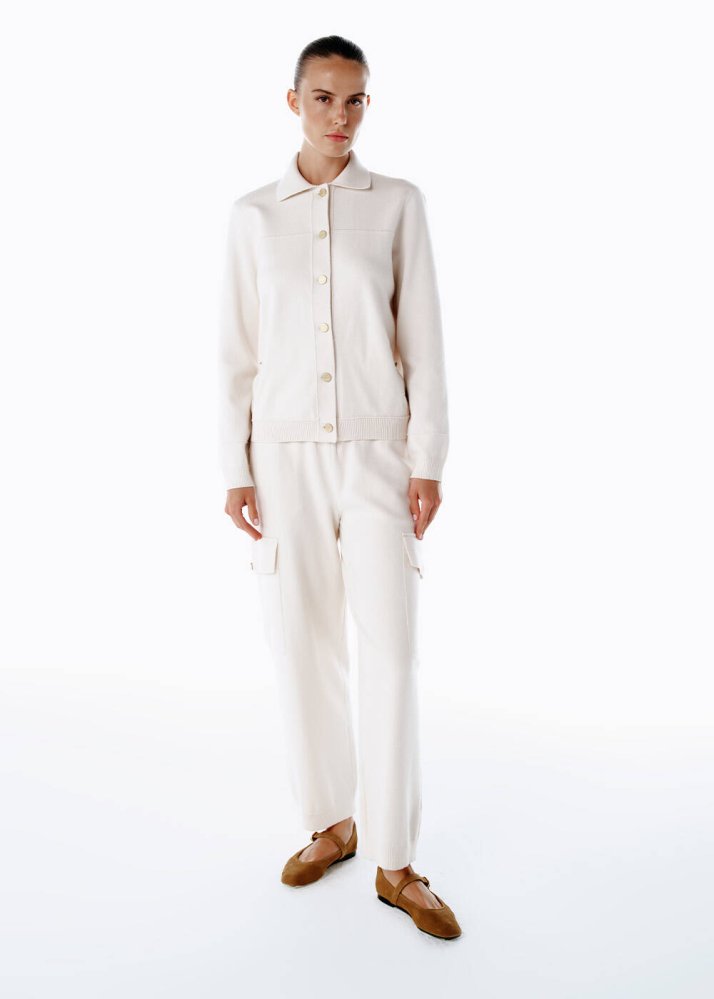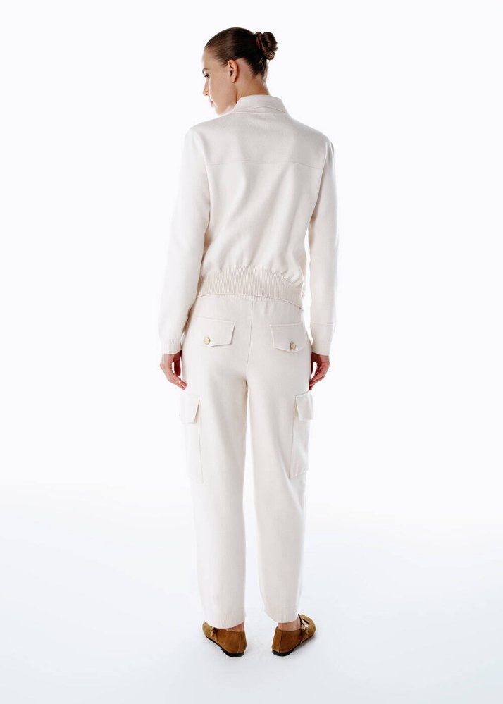 Knitss kadınının modern ve özgüvenli duruşunu yansıtan bu krem triko kargo pantolon, rahat şıklığın en zarif halini sunar. İtalyan iplik kalitesiyle üretilen tasarım, elastik beli ve fonksiyonel cepleriyle gün boyu konfor sağlarken, çağdaş bir görünüm kazandırır. Viskon Livaeco içeriğiyle hem hafif hem de akışkan bir form yaratır. Rahat kesimiyle şehirde ya da seyahatte stilinden ödün vermek istemeyen kadınların tercihi olan bu pantolon, Knitss’in çağdaş çizgisini her adımda hissettirir.