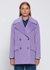 Özgür ruhunuzu ve neşenizi kışlık kombinlerinize bu lila kabanla taşıyın. Lila yün kaban, dikkat çeken enerjik rengi ve saf yünün sıcacık tutan doğal kalitesi sayesinde iç ısıtan bir kış stili sunar. Kruvaze yaka oversize lila kaban, çağdaş rengi ve kesiminin yanında yumuşak pürüzsüz yüzeyi ile de ayrıcalıklıdır.