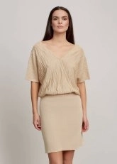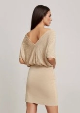 Knitss özel tasarım bej rengi triko elbise ile çağdaş feminen stili yakalayın. Geri dönüşümlü İtalyan iplik kalitesi ile ayrıcalıklı bej mini triko elbise; önden ve arkadan V yakası, mükemmel kalıbı, dökümlü modeli ile kusursuz görünüm sunar. Yazlık ince triko elbise, hem rahat hem feminen stili ile dolabınızın en özel parçalarından olmaya adaydır.