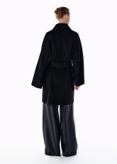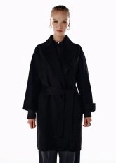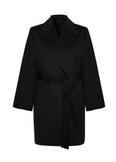 Kuşaklı Yün Kaban Siyah