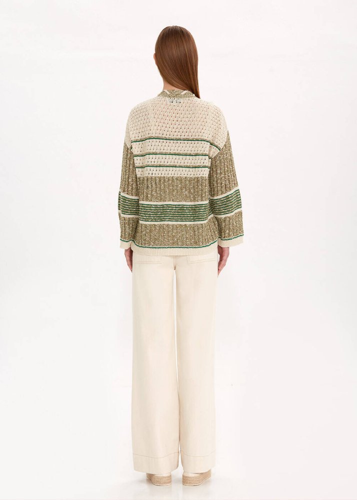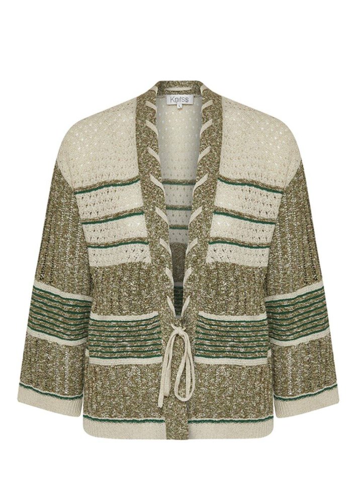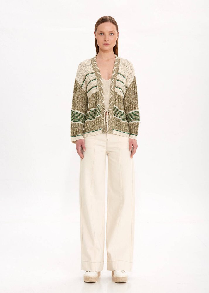 LACING DETAIL COLOR BLOCK KNIT CARDIGAN