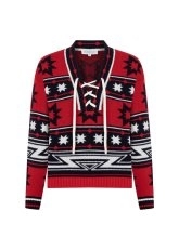 Star Patterned Oversize Extrafine Merino Knit Cardigan