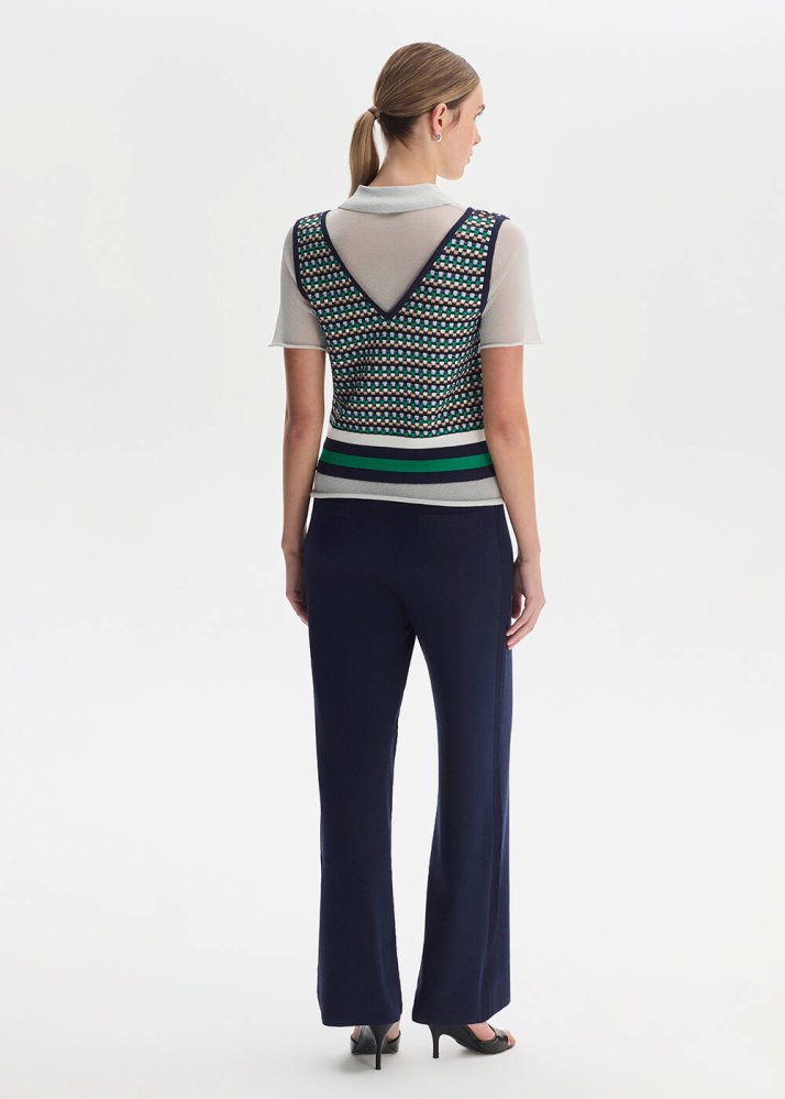 Lacivert Fitil Örgü Detaylı Triko Pantolon
