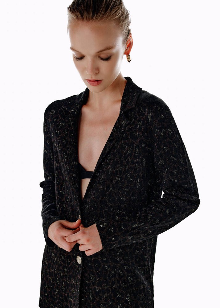 Leopar Desenli Triko Ceket