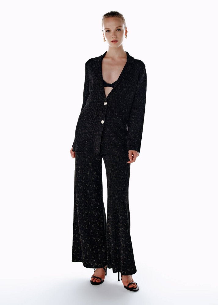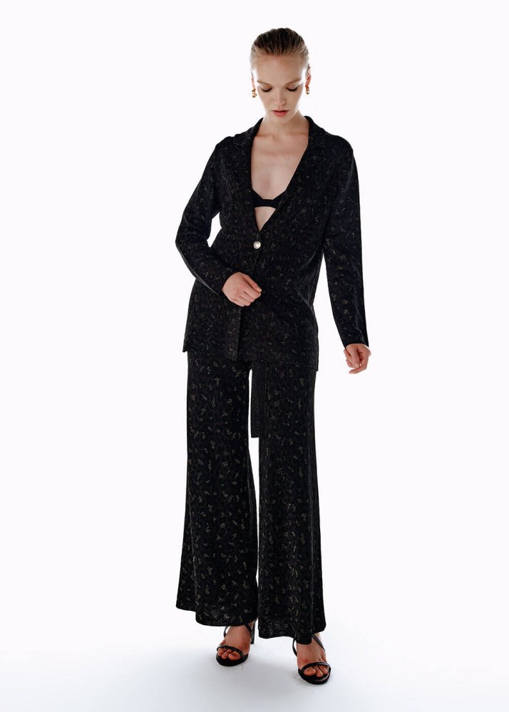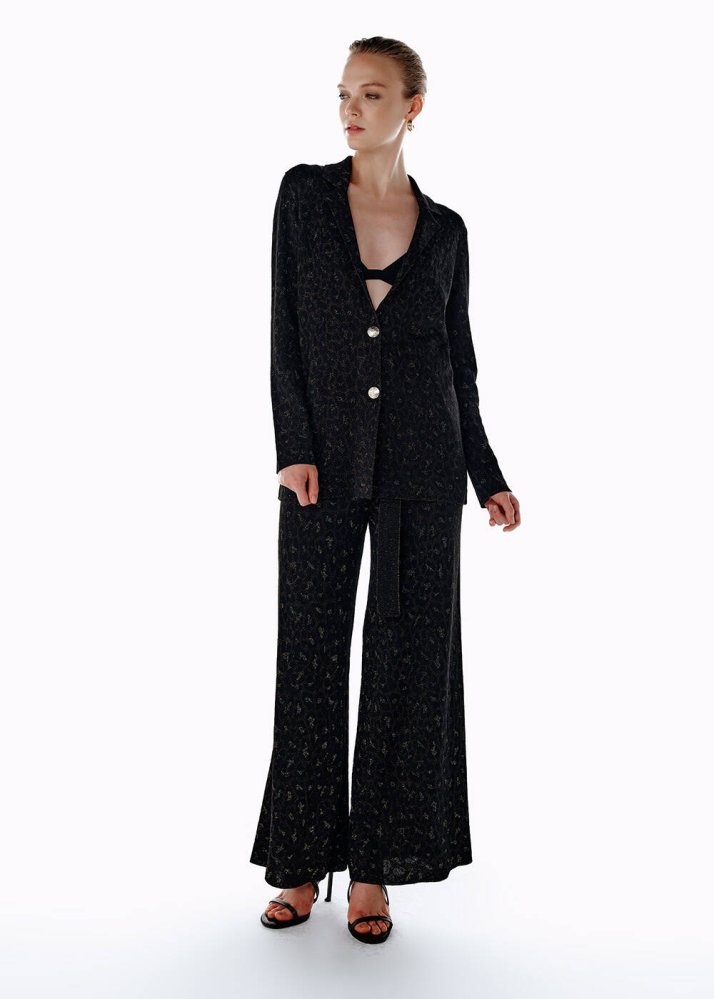 Leopar desenli triko pantolon, Knitss’in özgün desen anlayışını konforla buluşturan en çarpıcı parçalardan biri. İtalyan ipliğinin yumuşak dokusu, elastik bel ve kemerli tasarımla birleşerek gün boyu rahatlık sunuyor. Beldeki kemer formu hem modern hem de düzenli bir siluet yaratırken arka süs cepleri görünümü sofistike bir dokunuşla tamamlıyor. %85 FSC Viskon içeriği, hafiflik ve nefes alabilirlik sağlıyor. Düz trikolarla dengeli bir stil kurabilir, aynı desendeki üstlerle cesur ve bütünsel bir görünüm elde edebilirsiniz.