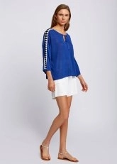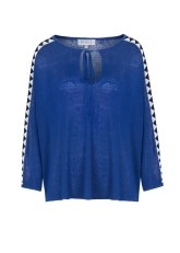 Linen Blend Contrast Geometrical Blue Knit Tunic