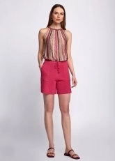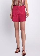 Linen Blend Pocket Detail Drawstring Fuchsia Knit Short