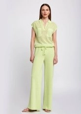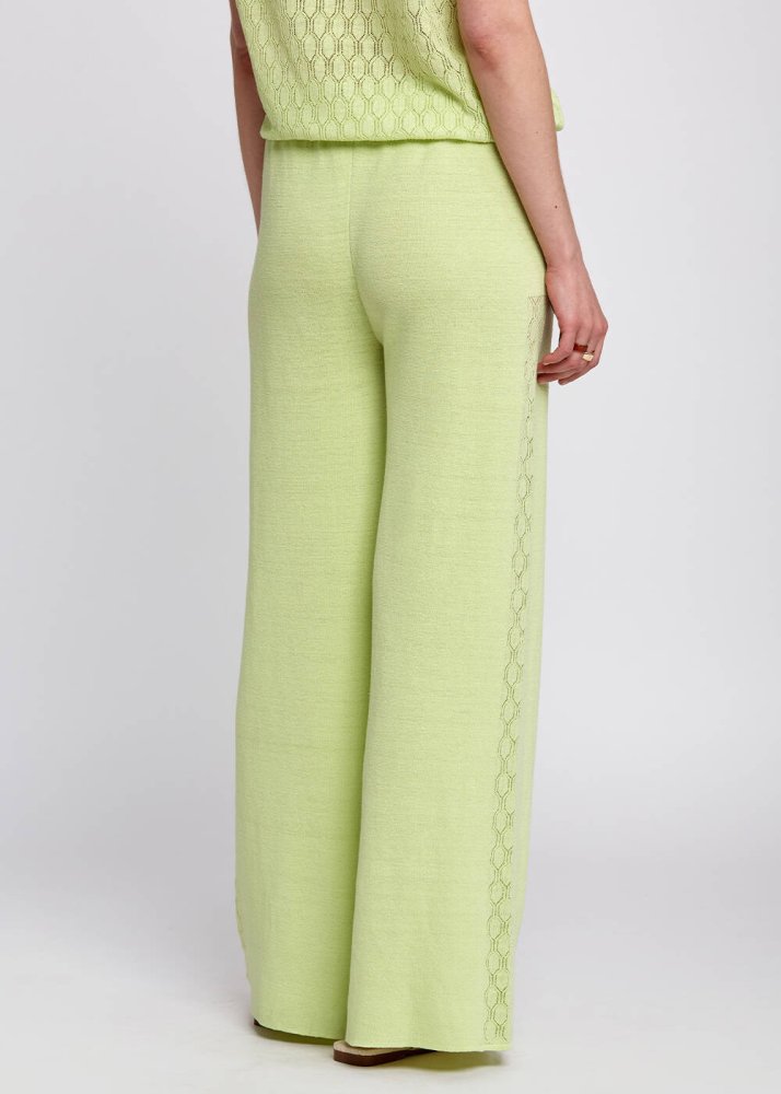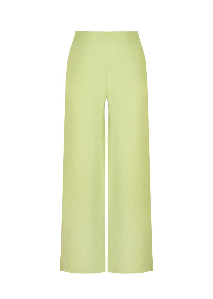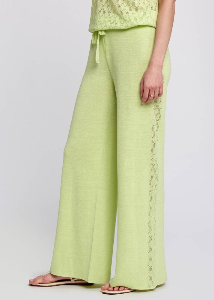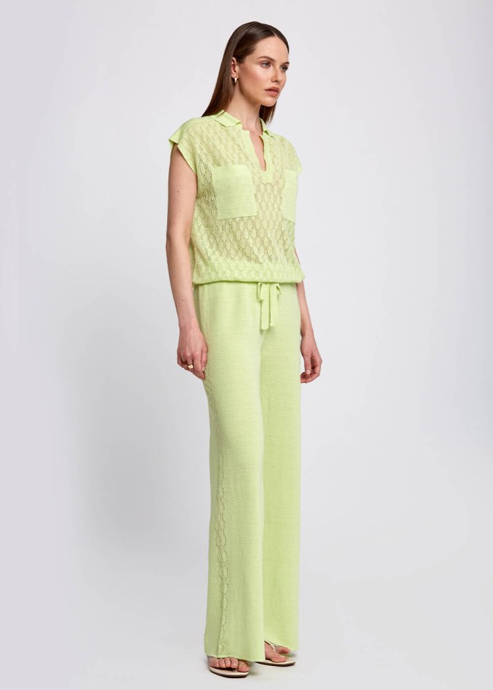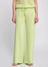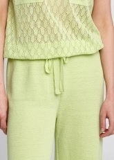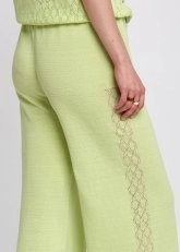 Linen Blend Pointelle Side Detail Loose Fit Green Knit Pants