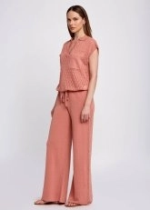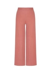 Linen Blend Pointelle Side Detail Loose Fit Rose Knit Pants