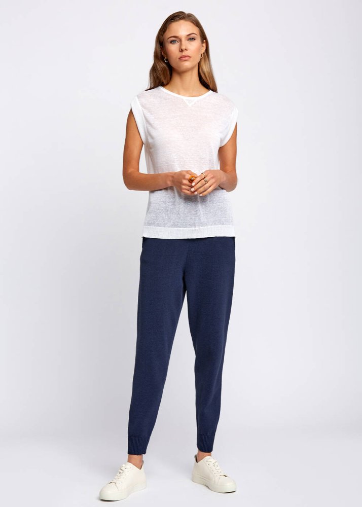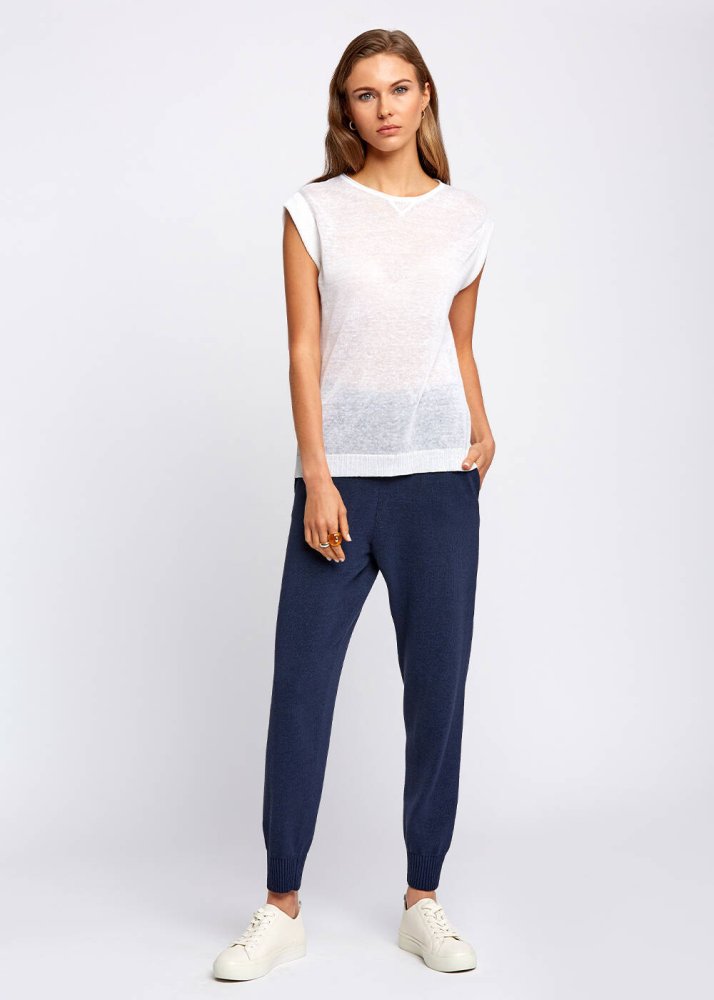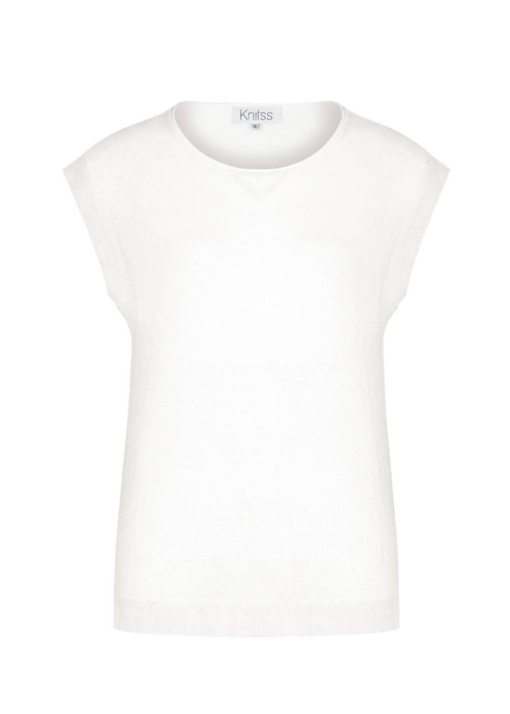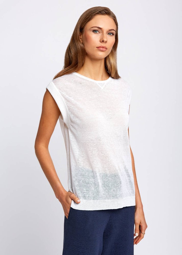 Linen Blend Sleeveless White Knit Top