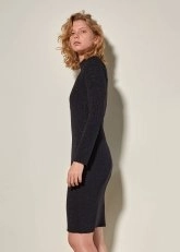 Lurex Detailed Wool Knit Black Slit Dress