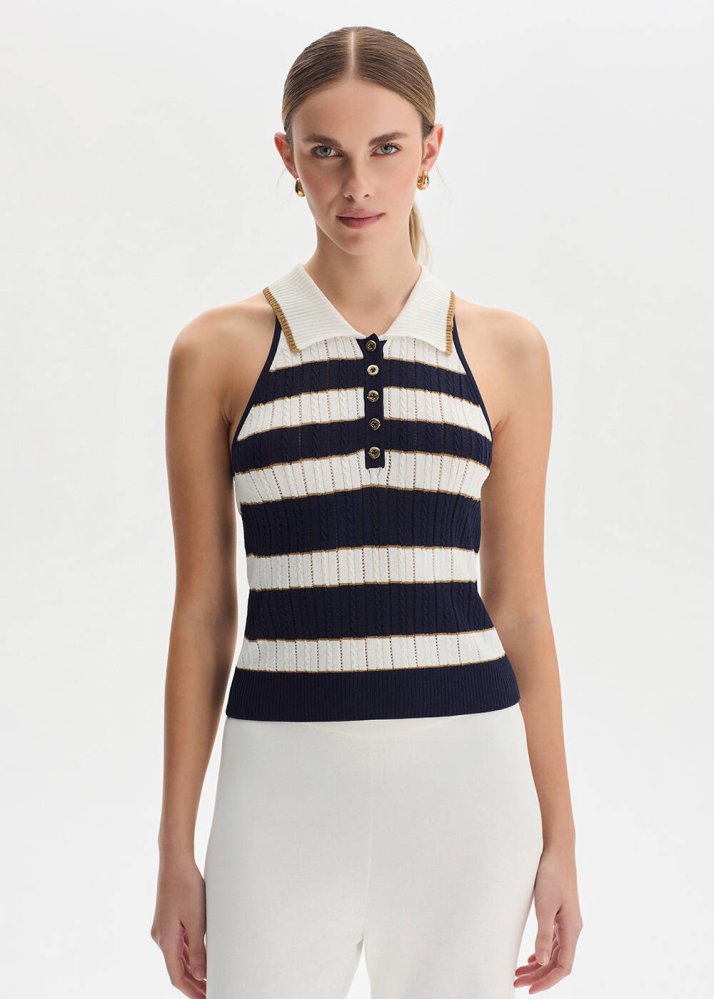 MARIN GOLD STRIPE POLO NECK KNIT TOP