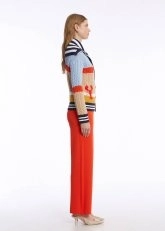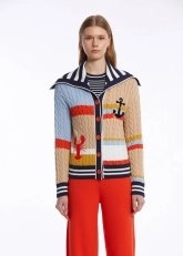 Özgün ruhunu çarpıcı parçalarla stiline yansıtmayı seven kadınlar için üretilen marin nakışlı çok renkli hırka ile fark yaratın. %100 organik pamuklu triko hırka; çağdaş stilde kullanılan renk blokları, marin stiline selam duran çizgili geniş yakası, ıstakoz nakışlı neşeli tasarımı ile yazın enerjisini giyim dolabınıza taşır. Sürdürülebilir, konforlu, neşeli ve sofistike kombinler için idealdir.