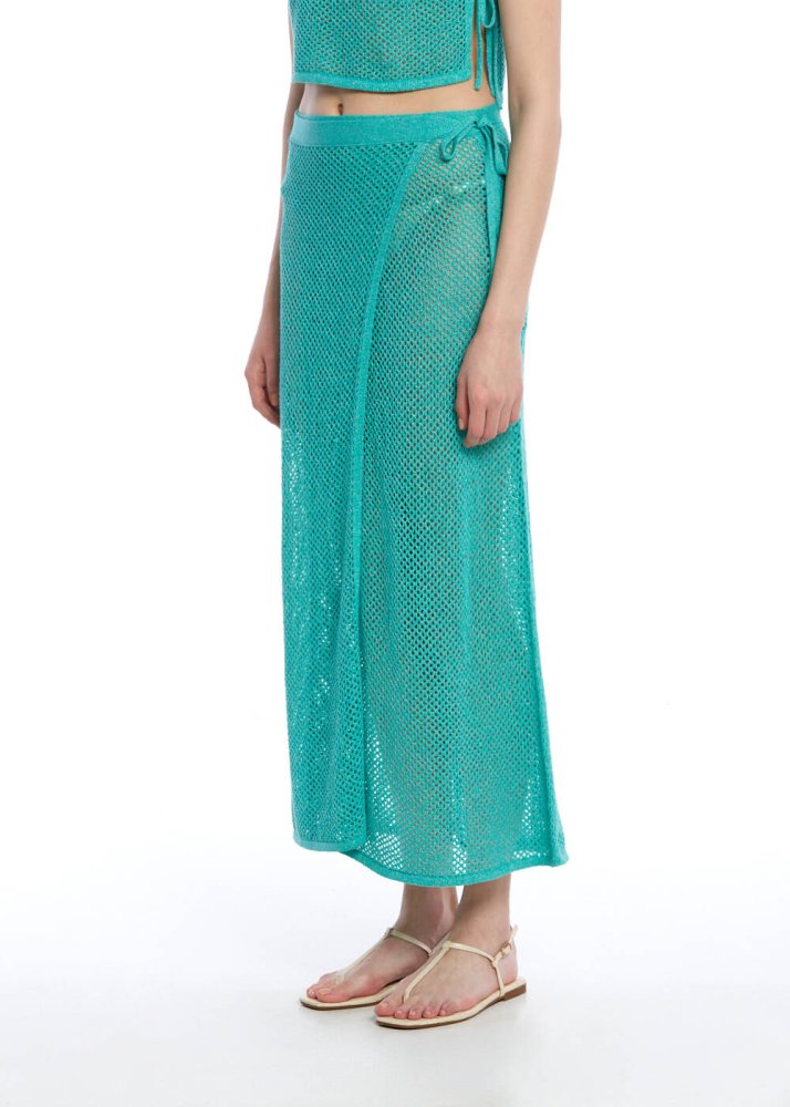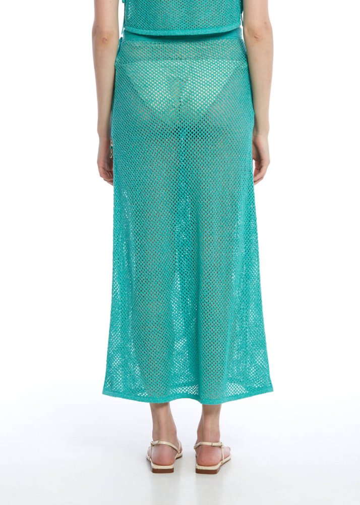 Deniz mavisi tonlarında tasarlanmış beachwear triko etek, yazın ferah ruhunu stilinize taşıyan mükemmel bir parça. Zarif ajur örgü detaylarıyla şıklığınıza dokunan bu etek, vücuda oturan kesimiyle feminen bir siluet oluşturur. Mavi beachwear triko etek, yazın taze havasını ve doğanın huzur veren tonlarını stilinize yansıtarak her kombinle uyum sağlar. Plajda veya yaz akşamlarında rahatlıkla giyebileceğiniz bu etek, şıklığınızı ön plana çıkarırken aynı zamanda rahatlığınızı da sağlar. Mavi beachwear triko üst ile mükemmel bir takım oluşturur; bu kombin, sahil stilinizi tamamlayacak şekilde hem rahat hem de zarif bir görünüm sunar.