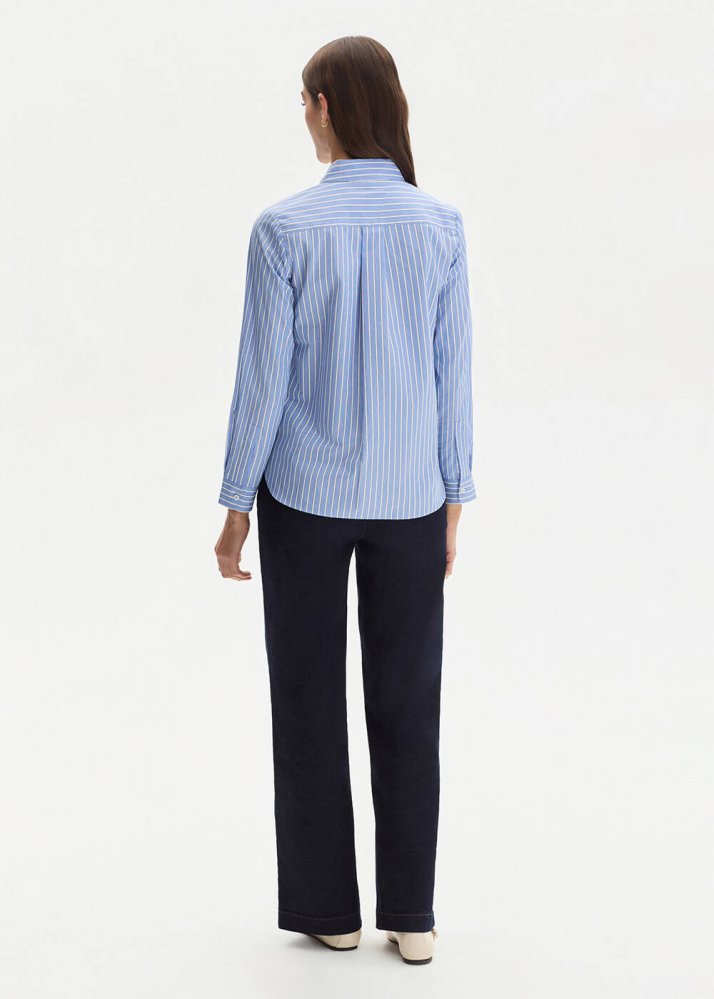 Çizgileriyle sade ama dikkat çekici bir görünüm sunan mavi çizgili regular fit gömlek, klasik giyimin modern temsilcisi. %100 pamuklu yapısı cilde nefes aldırırken, regular fit kesimiyle hareket özgürlüğü sağlar. Günlük kombinlerde enerjik, iş stilinde ise güven veren bir duruş yaratır. Mavi tonlarının ferahlığıyla, ister tek başına ister ceket altına giyildiğinde kusursuz bir denge sunar.