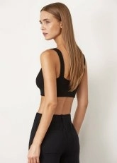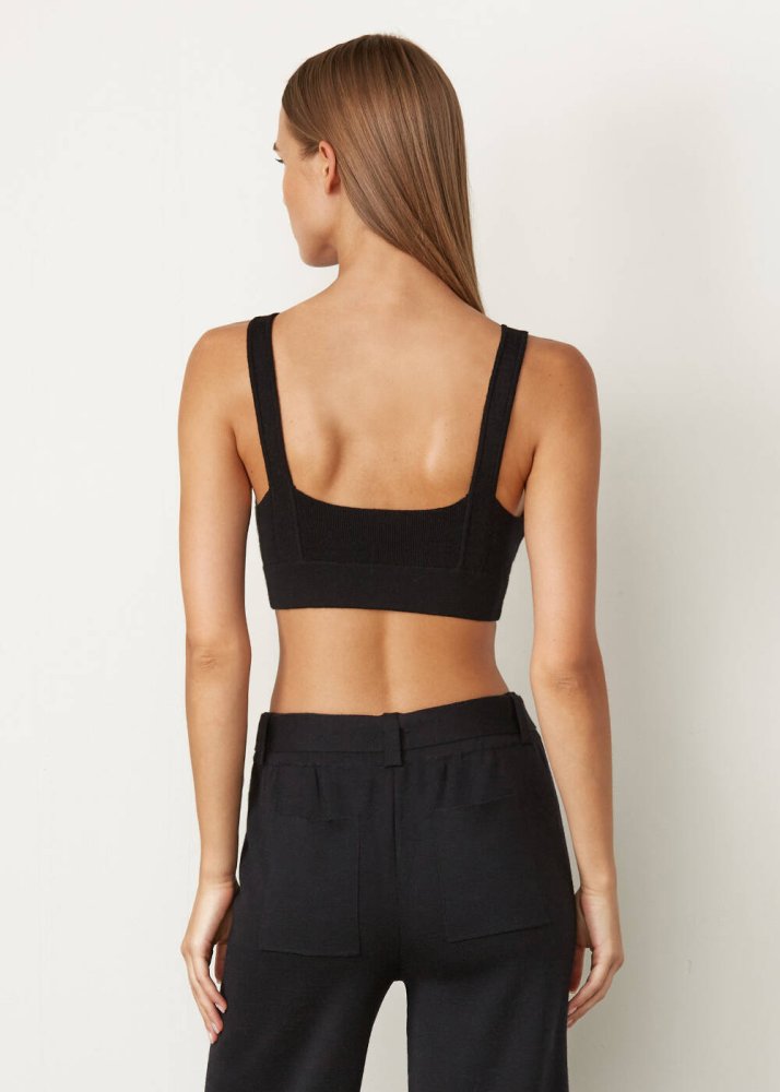 Merıno Wool Black Crop Knıt Top Wıth Straps