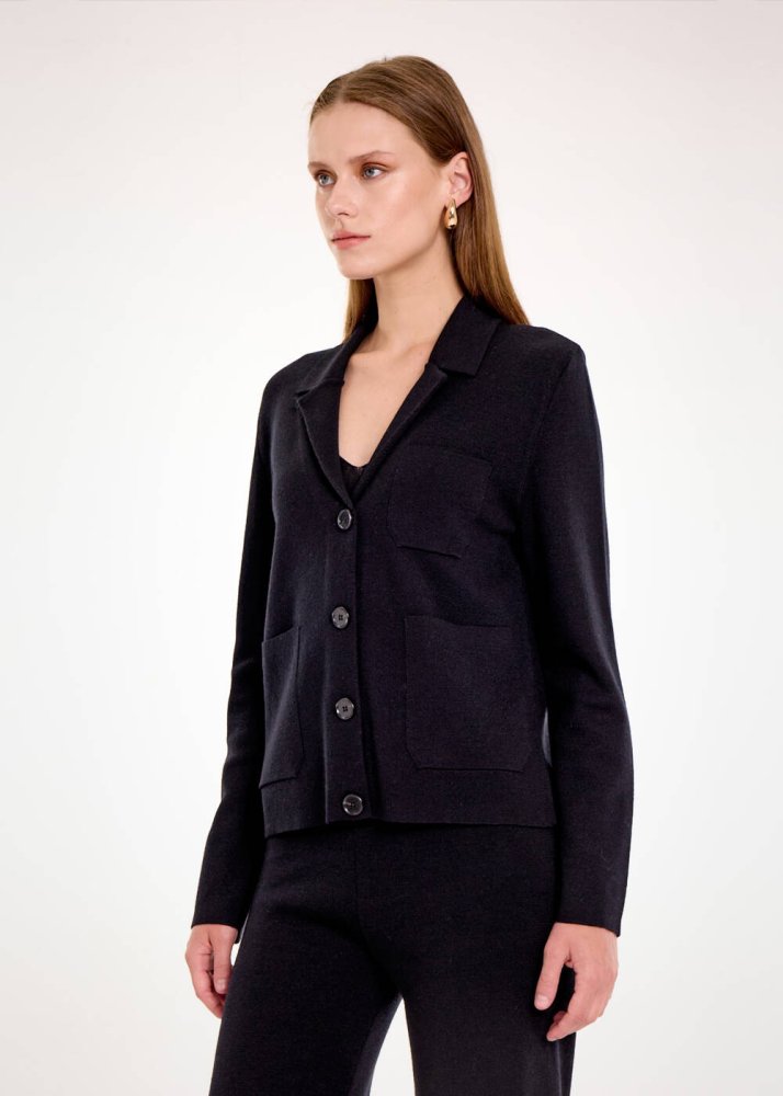 MERINO WOOL BLEND BLACK KNIT JACKET