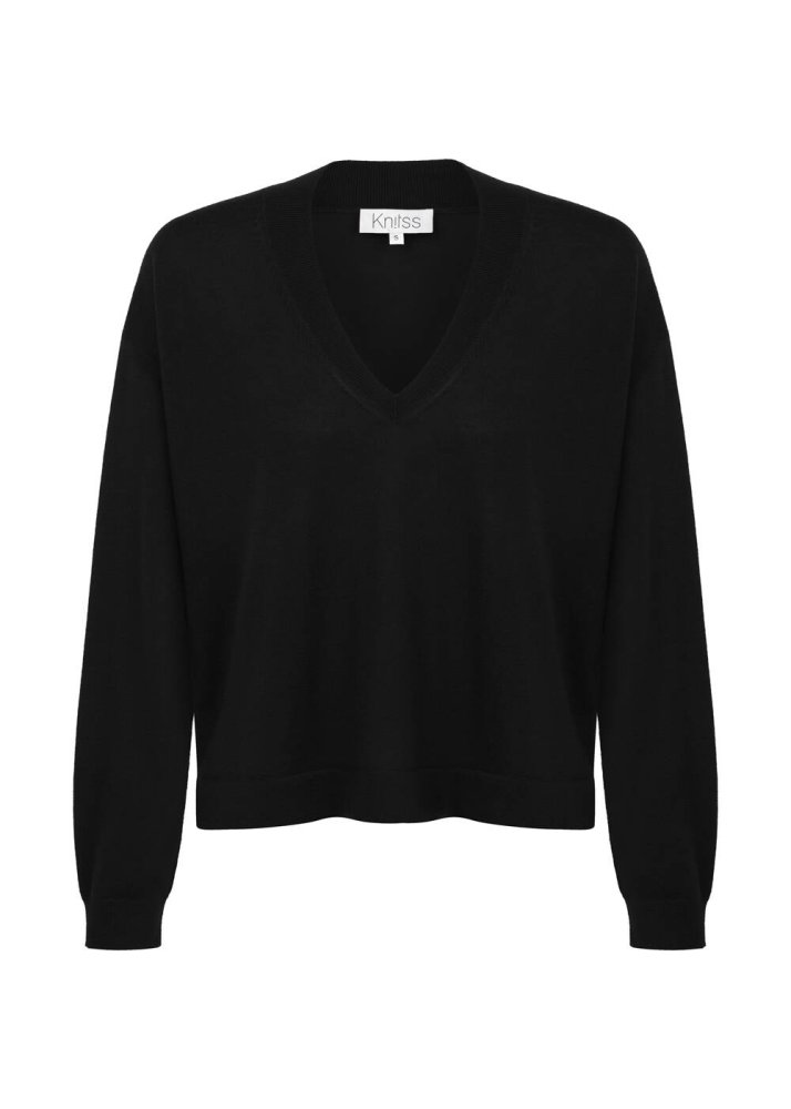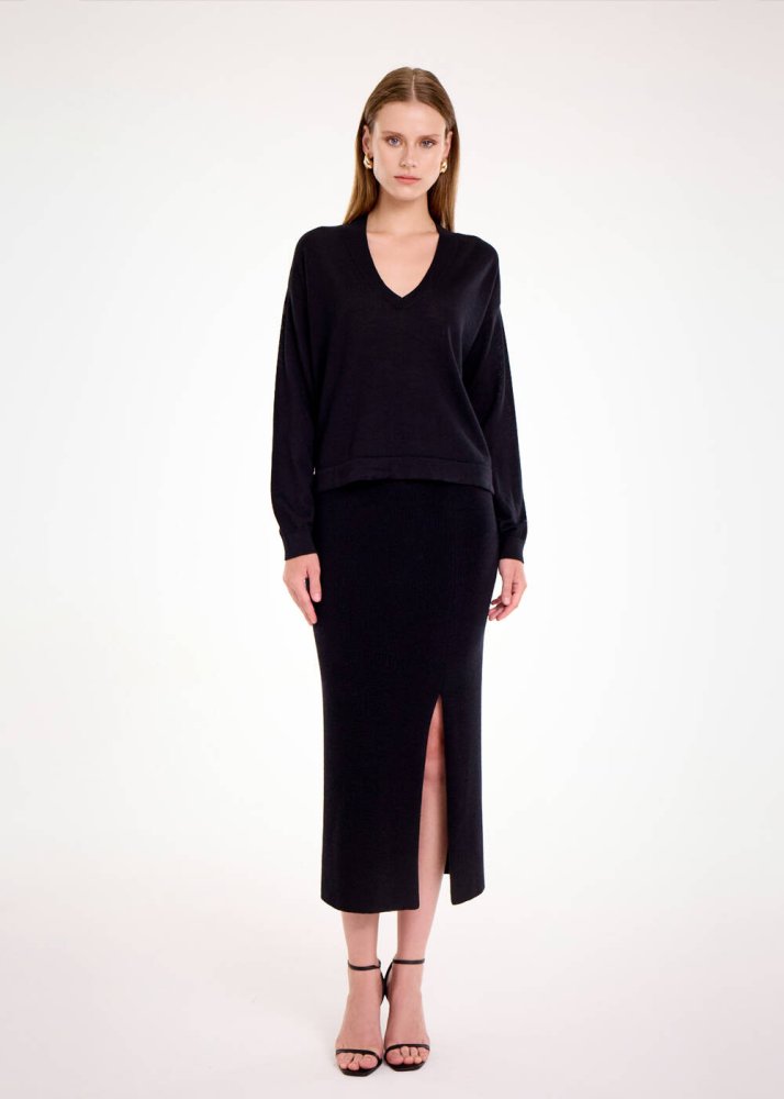 MERINO WOOL BLEND BLACK SWEATER