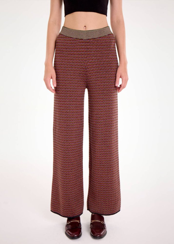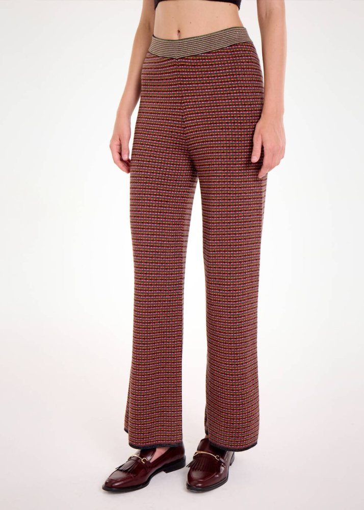 MERINO WOOL BLEND ETHNIC JACQUARD KNIT PANTS