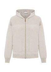 MERINO WOOL BLEND HOODED NATURAL KNIT CARDIGAN