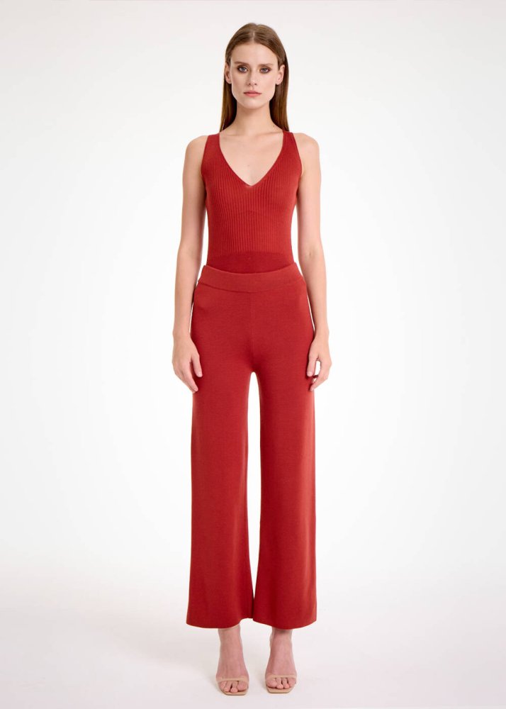 MERINO WOOL BLEND INTENSE RUST KNIT PANTS