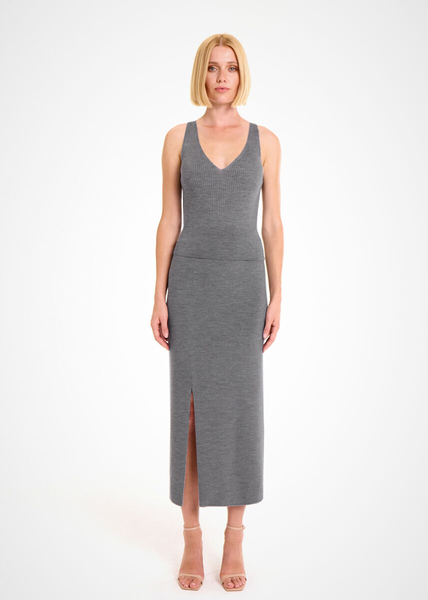 MERINO WOOL BLEND MID GREY KNIT SKIRT