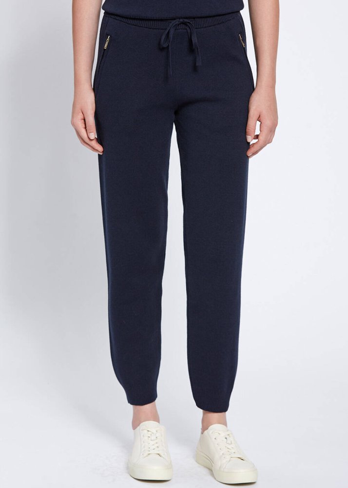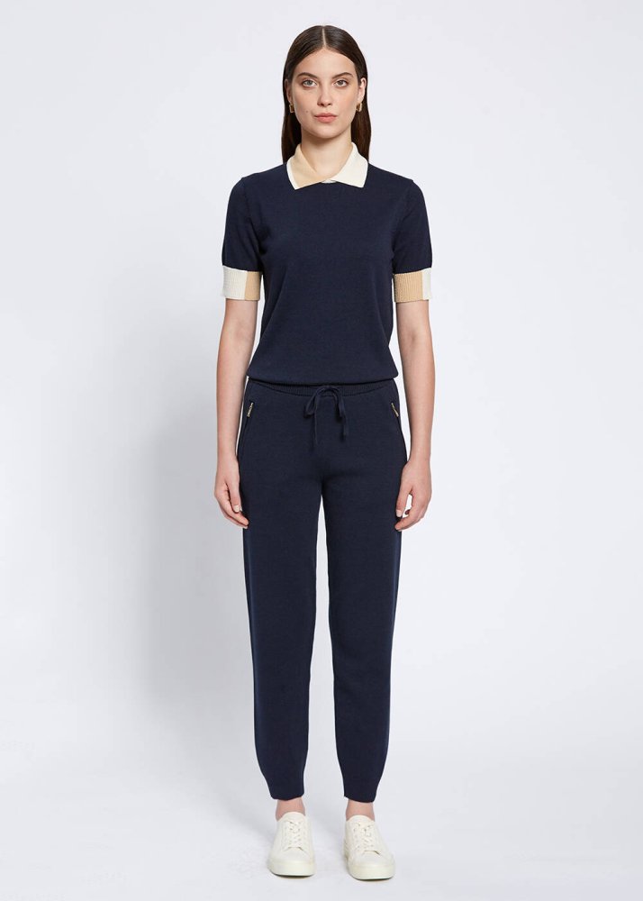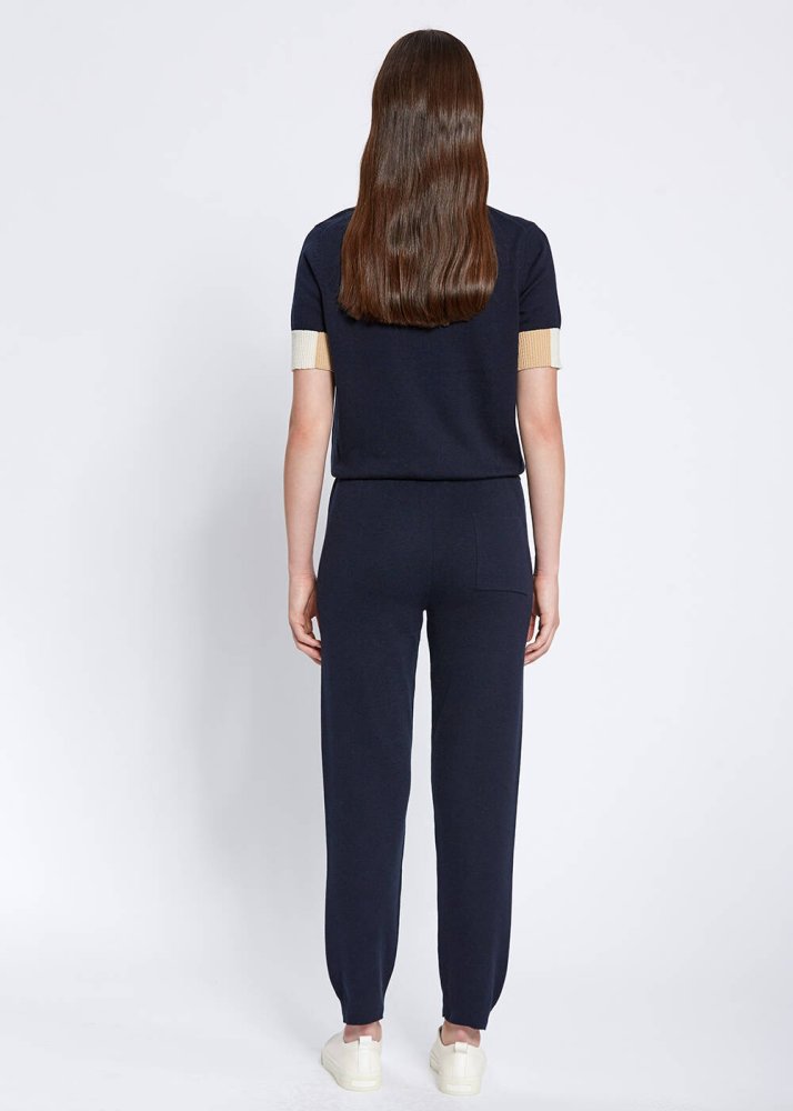 Merino Wool Blend Navy Knit Pant