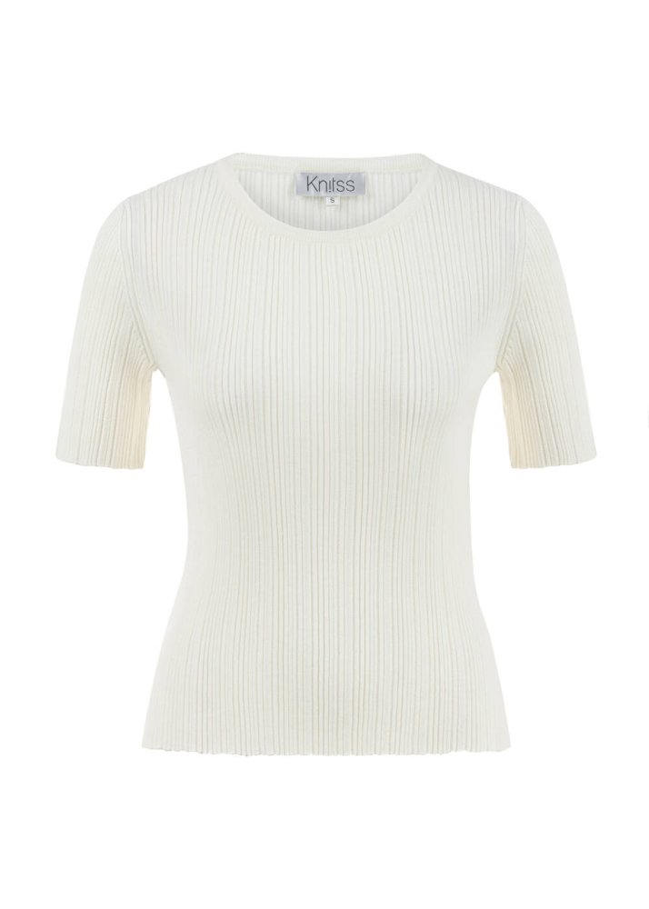 MERINO WOOL RICH BLEND ECRU KNIT TOP