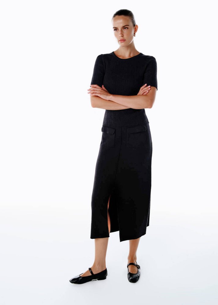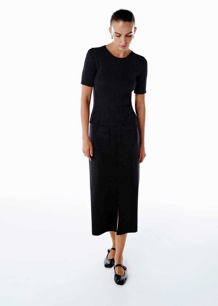 MERINO WOOL RICH BLEND KNIT SKIRT BLACK
