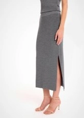 Merino Yün Karışımlı V Yaka Gri Triko Üst