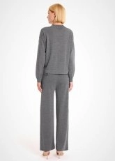 Doğal kalitesi ve minimal şıklığı ile yoğun iş temposuna sahip Knitss kadınlarının vazgeçilmezlerinden olacak gri Merino yünlü triko pantolon, topuklularla ya da spor ayakkabılarla kombinleyebileceğiniz kullanışlı bir parçadır. Rahat kalıbı, Merino yününün terletmeden sıcak tutan yapısı, stil sahibi arka cep kapakları ile hem çok şık hem de konforludur.
